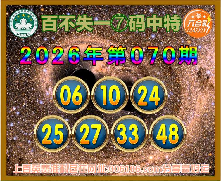 070期:【百不失一】 🎉⑦码中特🎉【06.10.24.25.27.33.48】开:25准公开见证
