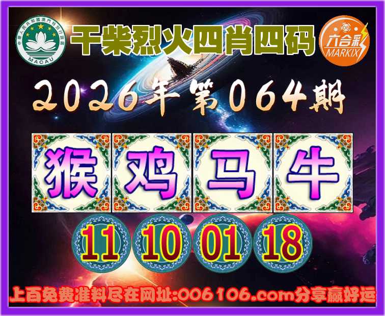 064期:〖干柴烈火〗 🌲四肖四码🌲【猴鸡马】【11.10.01.18】开:牛18准公开见证