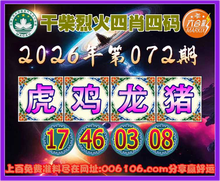 072期:〖干柴烈火〗 🌲四肖四码🌲【虎龙猪】【17.46.03.08】开:鸡46准公开见证